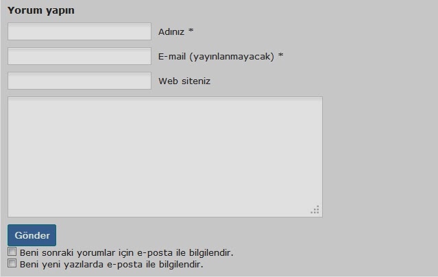 WordPress temanızdaki yorumbölümünde url adresi,web sitesi gibi textboxlar yer alıyor ve bunu kaldırmak ıstıyorsanız aşagıdakı kodu temanınızın function.php dosyasının en altına yapıştırmalısınız.
